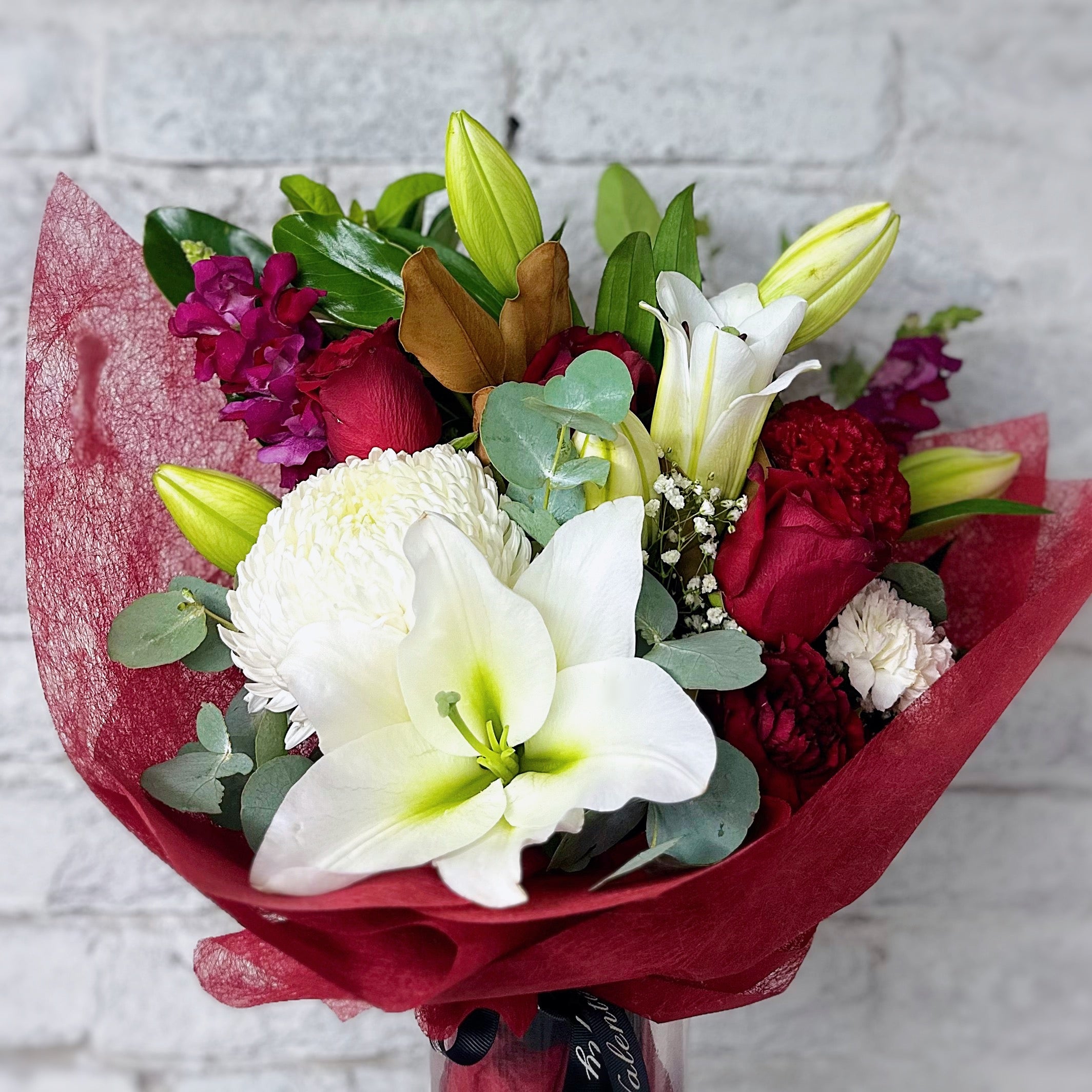 Order any bouquet from our Valentine's Day Range and automatically go into the draw to elevate your gift with our luxe Roses and Bubbles Hamper (valued at $180).